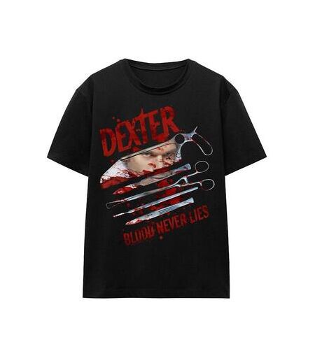 T-shirt Dexter Blood Never Lies Noir Disponible en taille femme. EU XXL,EU S,EU M,EU L,EU XL. . Femme > Vetements > T-shirt. ...