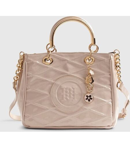 River Island River Island Cream Quilted Patent Top Handle Tote Bag