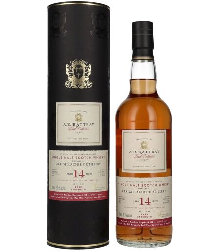 A.D. Rattray 14 Years Old CRAIGELLACHIE Burgundy Wine Finish Whisky 2010 57,1% Vol. 0,7l en boîte cadeau