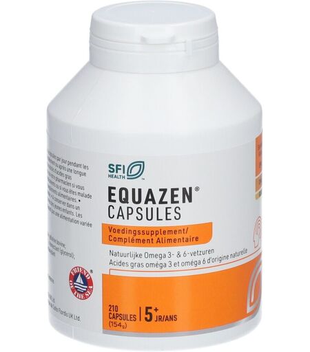 Complément alimentaire à utiliser dans le cadre d’une alimentation variée, équilibrée et d’un mode de vie sain.Springfield Equazen Omega 3 - 6Springfield Equazen Omega 3 - 6: contient un mélange spécial d’huile de poisson de haute qualité (avec les acides gras oméga 3 EPA et DHA) et d’huile d’onagre pure (avec les acides gras oméga 6 GLA) Le rapport des acides gras EPA: DHA: GLA est de 9: 3: 1 Dérivé de sources durables pour les poissons gras, tels que les sardines, qui sont connus pour leurs concentrations en EPA naturellement plus élevées Tous les suppléments Equazen portent le label de qualité «Friend of the Sea» IngrédientsHuile de poisson, stabilisateur (gélule : gélatine bovine, glycérol, eau purifiée), huile d'onagre (Oenothera biennis), antioxydant (vitamine E (du soja)). Les gélules Equazen ne contiennent pas de colorants, d'arômes ou d'édulcorants artificiels.Données nutritionnelles Par 2 gélules % AR* Per 6 capsules % AR* Huile de poisson 813 mg 2439 mg dont: EPA (acide eicosapentaénoïque) 186 mg 558 mg DHA (acide docosahexaénoïque) 58 mg 174 mg Huile d'onagre (Oenothera biennis) 200 mg 600 mg dont: AGL (acide gamma linolénique) 20 mg 60 mg Vitamine E (d-alpha tocophérol) (de soja) 3,6 mg ET** 30 11 mg ET** 92 *AR = Apport de Référence**TE = équivalent d-alpha tocophérolConseils d'utilisationDose journalière recommandée Aussi bien pour les enfants que pour les adultes:Pendant les 12 premières semaines: 6 gélules par jour, réparties en 2 ou 3 prises.Ensuite: 2 à 4 gélules par jour, réparties en 1 ou 2 prises. De préférence pendant les repas.Précautions d'emploi Conserver dans un endroit frais et sec. Tenir hors de portée des jeunes enfants. Ne pas dépasser la dose recommandée. Convient à tous les âges à partir de 5 ans. Pour les enfants de moins de cinq ans, il existe Equazen Liquide ou Equazen à Mâcher. Poids net210 gélulesFabricantSpringfield Nutraceuticals B.V.Simon Stevinstraat 153261 MG Oud-BeijerlandPays-Bas ...
