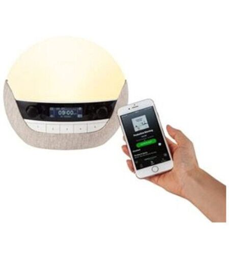 Caracteristiques principales : Fonctionnalités appareil de sommeil : Fonction radio-Réveil, Simulateur d'aube et / ou crépuscule, Variateur. Type d'aide au sommeil : Relaxation sonore, Activateur de sommeil. Mode d'alimentation : Secteur. Connecté : Non. Intensité de lumière : Progressive. Télécommande fournie : Non. Nombre et types de sons : 20. Disponibilité des pièces détachées : 2 ans. Points forts : Simulateur d'aube et de crépuscule avec radio FM. 20 sons disponibles - Bruit blanc. Technologie Bluetooth - Port USB. Fonction lampe de chevet. ...