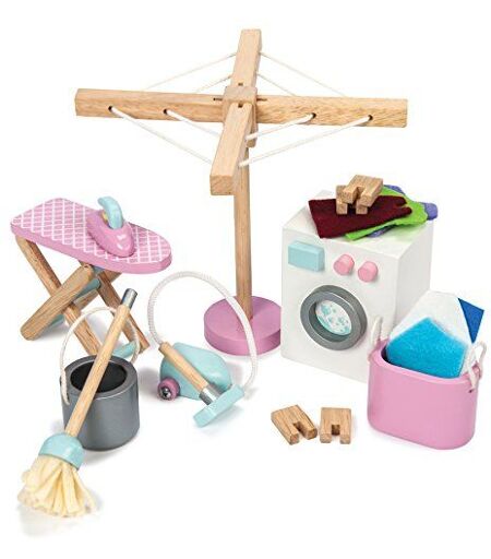 pBeautiful, wooden dolls house accessory set by Le Toy Van, Scaled to fit all of Le Toy Van dolls houses and furniture sets, This set includes a washing machine, a washing line, an iron and ironing board and a selection of cleaning accessories, Dimensions 20 x 20 x 13cms (the box), Recommended for children aged 3 years +p ...