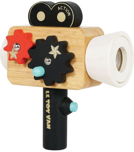 3, 2, 1, Action ! Découvrez la caméra en bois d'hévéa, colorée avec des peintures à base d'eau, pour les enfants à partir de 3 ans. Avec un objectif à effet kaléidoscope et des engrenages rotatifs, cette caméra en bois au style vintage est parfait pour les petits réalisateurs en herbe ! Caméra de cinéma Hollywood, un jouet en bois de la marque Le Toy Van. Référence TV334. ...