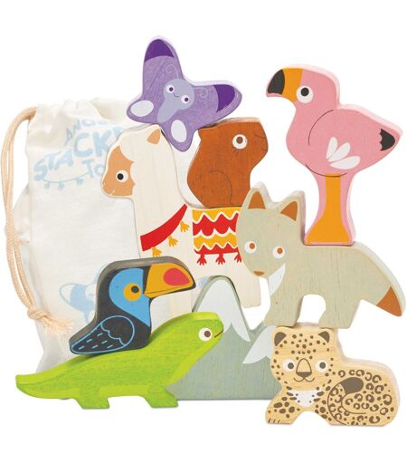 Réussirez-vous à empiler ces petits animaux sans qu'ils ne tombent ? Ce jeu à empiler, fabriqué en bois d'hévéa, est idéal pour que les enfants développent leur coordination et leur motricité fine. Il comprend 8 animaux en bois et une montagne, livrés avec un petit sac en tissu imprimé pour les ranger facilement et les emporter partout ! Dimensions du lama : 7,4 cm. ...