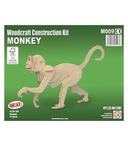 Cette maquette représente un singe. Il s'agit d'une maquette 3D à monter en bois. Elle est composée de plaques prédécoupées (épaisseur 3 mm). Cette miniature à fabriquer sera un cadeau à offrir idéal pour les maquettistes, aux doigts friands d'imaginaire et pétris de patience. Ils verront progressivement se former un singe. Le montage est adapté aux enfants de plus de 7 ans. Mode d'emploi pour réaliser cette maquette de singe : - Décrochez les pièces - Assemblez-les à l'aide des instructions de montage. Vous pouvez mettre un point de colle pour une meilleure tenue dans le temps. - Lorsque votre maquette de singe est terminée, vous pouvez l'exposer sur une étagère ou sur un socle de présentation. Vous pouvez la laisser avec les teintes naturelles du bois ou bien la mettre en couleur. Ce kit de construction pour miniaturophiliste contient : plaque prédécoupée, feuille de papier à poncer et notice de montage. Cette maquette singe a obtenu le label environnemental FSC (Forest Stewardship Council), qui assure que la production de bois ou d'un produit à base de bois respecte les procédures censées garantir la gestion durable des forêts. Type de produit : Maquette Marque : Quay Couleur : Naturel (bois) Matériau : Bois À partir de 7 ans Dimensions : 250 x 170 x 60 mm Conditionnement : 1 pièce Référence : M009 Code-barres : 5060027570233 ...