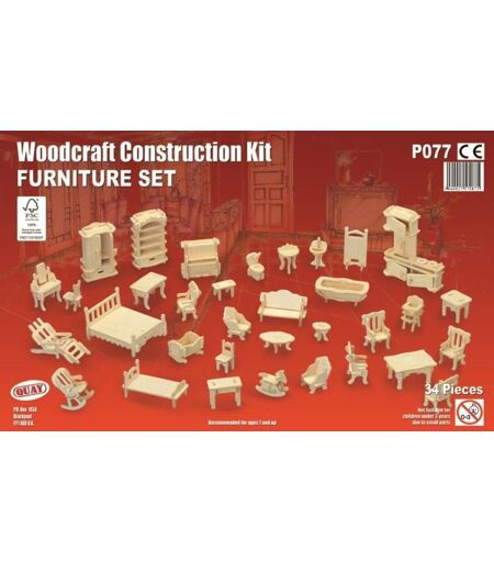 Ces maquettes représentent du mobilier. Il s'agit de maquettes 3D à monter en bois. Elles sont composées de plaques prédécoupées (épaisseur 3 mm). Ces miniatures à fabriquer seront un cadeau à offrir idéal pour les maquettistes, aux doigts friands d'imaginaire et pétris de patience. Ils verront progressivement se former des meubles. Le montage est adapté aux enfants de plus de 7 ans. Mode d'emploi pour réaliser ces maquettes de meubles : - Décrochez les pièces - Assemblez-les à l'aide des instructions de montage. Vous pouvez mettre un point de colle pour une meilleure tenue dans le temps. - Lorsque vos maquettes de meubles sont terminées, vous pouvez l'exposer sur une étagère ou sur un socle de présentation. Vous pouvez la laisser avec les teintes naturelles du bois ou bien la mettre en couleur. Ce kit de construction pour miniaturophiliste contient : plaque prédécoupée, feuille de papier à poncer et notice de montage. Ces maquettes mobilier ont obtenu le label environnemental FSC (Forest Stewardship Council), qui assure que la production de bois ou d'un produit à base de bois respecte les procédures censées garantir la gestion durable des forêts. Type de produit : Maquette Marque : Quay Couleur : Naturel (bois) Matériau : Bois À partir de 7 ans Conditionnement : 34 pièces Référence : P077 Code-barres : 5060027570875 ...
