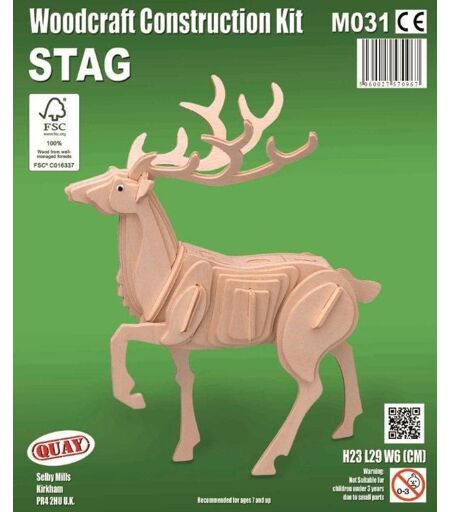 Cette maquette représente un cerf. Il s'agit d'une maquette 3D à monter en bois. Elle est composée de plaques prédécoupées (épaisseur 3 mm). Cette miniature à fabriquer sera un cadeau à offrir idéal pour les maquettistes, aux doigts friands d'imaginaire et pétris de patience. Ils verront progressivement se former un cerf. Le montage est adapté aux enfants de plus de 7 ans. Mode d'emploi pour réaliser cette maquette de cerf : - Décrochez les pièces - Assemblez-les à l'aide des instructions de montage. Vous pouvez mettre un point de colle pour une meilleure tenue dans le temps. - Lorsque votre maquette de cerf est terminée, vous pouvez l'exposer sur une étagère ou sur un socle de présentation. Vous pouvez la laisser avec les teintes naturelles du bois ou bien la mettre en couleur. Ce kit de construction pour miniaturophiliste contient : plaque prédécoupée, feuille de papier à poncer et notice de montage. Cette maquette cerf a obtenu le label environnemental FSC (Forest Stewardship Council), qui assure que la production de bois ou d'un produit à base de bois respecte les procédures censées garantir la gestion durable des forêts. Type de produit : Maquette Marque : Quay Couleur : Naturel (bois) Matériau : Bois À partir de 7 ans Dimensions : 290 x 230 x 60 mm Conditionnement : 1 pièce Référence : M031 Code-barres : 5060027570967 ...