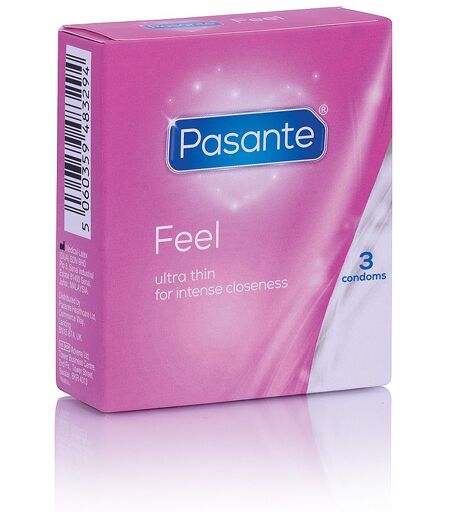 Pasante Feel, 3 pcs, Préservatifs pour homme, Ayez des rapports sexuels qui vous apportent un plaisir intense tout en étant protégé. Les préservatifs ultra-fins Pasante Feel garantissent un confort maximal et une sensibilité accrue. Le produit : fin pour donner la sensation de ne rien porter très souple, s’adapte à vos dimensions offre un confort maximal et un plaisir intense glisse bien grâce à la lubrification Composition du produit : en latex de caoutchouc naturel Mode d’emploi : Respectez le mode d’emploi. Utilisez un lubrifiant à base d’eau. ...