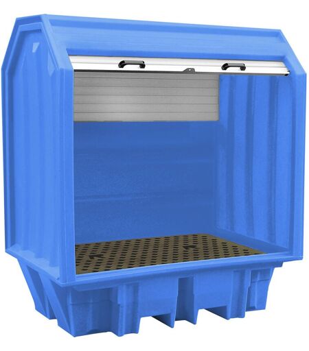 Dépôt pour produits dangereux en PE avec rideau, pour 2 fûts de 200 l, capacité de rétention 230 l. Produit livré = monté. Hauteur = 1690 mm. Largeur = 1490 mm. Profondeur = 990 mm. Capacité fûts = 2x200 l. Capacité cubitainers de 1000 l = 0 pces. Capacité de rétention = 230 l. Coloris = bleu. Label = homologation générale de surveillance de construction (DiBt). Matériau = polyéthylène. Verrouillage = dispositif pour cadenas. Hauteur intérieure = 1250 mm. Largeur intérieure = 1300 mm. Profondeur intérieure = 800 mm. Type de porte = rideau horizontal. Hauteur du sol = 90 mm. Lieu d'utilisation = pour l'intérieur et l'extérieur. Pour produits = produits dangereux pour la nappe phréatique, produits corrosifs. Classes de produits dangereux = pour liquides dangereux pour la nappe phréatique et corrosifs. Poids = 85 kg. Charge max. = 600 kg. Type de produit = dépôts pour produits dangereux. Pour le stockage intérieur et extérieur conforme aux prescriptions de liquides corrosifs, produits ...