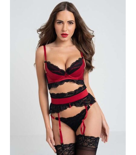 Lovehoney Lingerie Ensemble 3 pièces ouvert Empress rouge & noir L