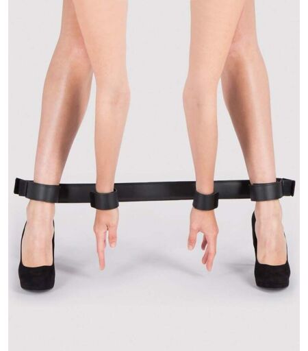 Contrôle total et confort assuré Offrez à vos jeux de bondage une dimension encore plus intense avec cette barre d’écartement en cuir de la gamme Deluxe. Conçue pour maintenir poignets et chevilles dans une position soumise, elle associe solidité et confort pour des sessions aussi sûres qu’excitantes. Le cuir enveloppe la structure de la barre et les six menottes ajustables se ferment à l’aide de larges bandes Velcro, garantissant un maintien fiable tout en restant simples à retirer à tout moment. Des positions variées pour pimenter vos scénarios Contrairement aux barres classiques qui se limitent souvent à deux ou quatre attaches, ce modèle en propose six afin d’explorer plusieurs configurations. Les chevilles sont maintenues bien écartées par les grandes menottes, tandis que deux paires de menottes pour les poignets permettent de varier les sensations : bras croisés à l’intérieur, devant le corps, ou encore largement étendus à l’extérieur. Vous avez ainsi la liberté d’expérimenter différentes postures, du plus confortable au plus restrictif, selon l’intensité recherchée. Un accessoire premium pour vos jeux BDSM Avec ses finitions robustes et son design élégant, cette barre d’écartement s’impose comme un incontournable des accessoires BDSM haut de gamme. Le cuir assure un contact agréable sur la peau, et l’absence de pièces métalliques apparentes rend l’ensemble discret et silencieux. Longue de 50 cm, elle garantit une ouverture optimale des jambes pour intensifier vos mises en scène. Un compagnon idéal pour vos sessions de domination, mêlant esthétique, fiabilité et plaisir. Pour que chacun·e prenne du plaisir en toute sécurité, la communication, le consentement et la connaissance des risques liés à vos pratiques sont essentiels au bon déroulement de vos jeux BDSM. ...