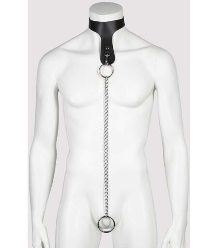 Élégance et fermeté pour vos jeux de domination Ce collier en cuir de qualité supérieure est conçu pour allier esthétisme et intensité dans vos moments intimes. Sa coupe ajustable grâce à une boucle solide lui permet de s’adapter confortablement à différentes morphologies, tout en conservant un maintien ferme. Avec son design en T à l’avant et son anneau métallique, il ouvre la voie à de multiples scénarios de jeux BDSM, en alliant séduction et contrôle. Un accessoire polyvalent pour explorer vos envies Relié au collier par une chaîne détachable, un cockring en métal vient intensifier les sensations. Deux tailles sont disponibles sur la même chaîne, 4 cm et 5 cm de diamètre intérieur, afin de s’adapter à différentes pratiques. Le cockring peut être porté autour du pénis seul ou du pénis et des testicules, selon le degré de contrainte et de stimulation recherché. Le second anneau, non porté, s’accroche facilement au collier via un mousqueton rapide, offrant ainsi une totale liberté d’ajustement. Sécurité et possibilités infinies Ce collier est équipé d’un clip de sécurité qui permet de détacher la chaîne en un instant, garantissant des jeux toujours maîtrisés. Et si l’envie vous prend de varier les plaisirs, il est possible de retirer la chaîne pour la remplacer par votre laisse ou accessoire préféré. Les anneaux en métal sont également compatibles avec une large gamme d’accessoires BDSM, ce qui fait de ce collier un outil polyvalent et durable, idéal pour enrichir vos sessions et donner une nouvelle dimension à vos expériences. Pour que chacun·e prenne du plaisir en toute sécurité, la communication, le consentement et la connaissance des risques liés à vos pratiques sont essentiels au bon déroulement de vos jeux BDSM. ...