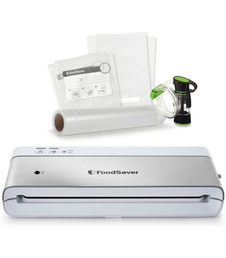 Découvrez la machine sous vide FoodSaver VS0100X, votre allié pour une conservation optimale des aliments. Son design compact et élégant permet de conserver la fraîcheur de vos aliments jusqu'à cinq fois plus longtemps. Grâce à sa puissance de 90W et son système de scellage sous vide efficace, vos plats préférés seront protégés des brûlures de congélation. Il est idéal pour les préparations de repas, les restes ou la congélation de viandes. Réduisez le gaspillage alimentaire tout en économisant de l'argent ! ...