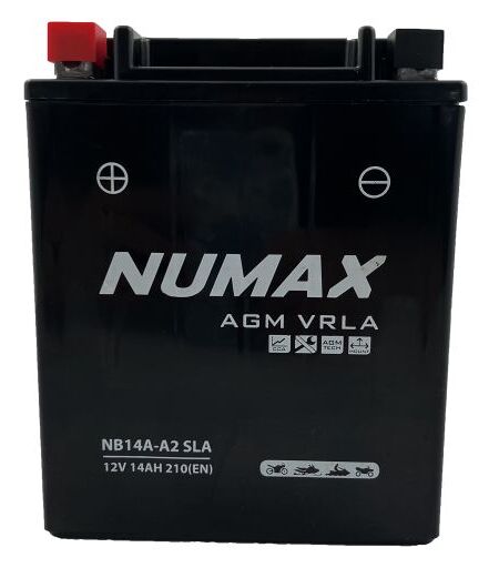 Batterie moto Numax NB14A-A2 sla 12V 14Ah 210A Dimensions: 134x90x166mm et plus à Gauche