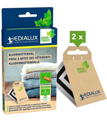 EDIALUX Piège à mites des vêtements anti-mites textiles, protection sans produits chimiques et sans odeur pour armoires et textiles, 2 mois de protection,