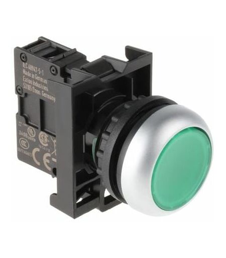 Série = Eaton Moeller Diamètre de découpe = 22mm Couleur de bouton-poussoir = Vert Actionnement = Momentané Type de bouton-poussoir = Rond Matériau du bouton poussoir = Plastique Indice de protection = IP69K Diamètre de bouton-poussoi ...