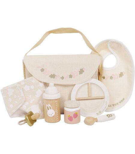 Ce sac à langer contient tout ce dont les enfants ont besoin pour prendre soin de leurs poupées. Cet ensemble se compose d'un joli sac à langer en coton avec sangle de transport. À l'intérieur se trouvent tous les accessoires essentiels pour le repas et la toilette de bébé, notamment un bavoir, une tétine, une couche, une assiette, une cuillère, un petit pot de nourriture pour bébé et un biberon. ...