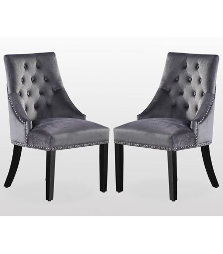 Life Interior Windsor - Lot De 2 Chaises Capitonnées En Velours Gris Foncé - Style Classique & Design - Pieds En Bois - Salle À Manger, Salon Ou Coiffeuse