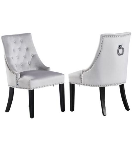Life Interior Windsor - Lot De 2 Chaises Capitonnées Grises En Velours - Style Classique & Design - Pieds En Bois - Salle À Manger, Salon Ou Coiffeuse