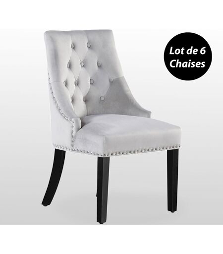 Life Interior Windsor - Lot De 6 Chaises Capitonnées Grises En Velours - Style Classique & Design - Pieds En Bois - Salle À Manger, Salon Ou Coiffeuse