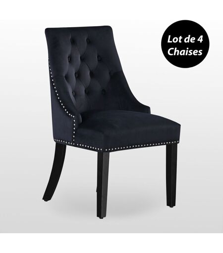 Life Interior Windsor - Lot De 4 Chaises Capitonnées En Velours Noir - Style Classique & Design - Pieds En Bois - Salle À Manger, Salon Ou Coiffeuse