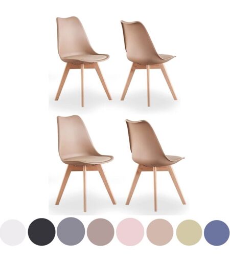 PN HOME Lot de 4 chaises de salle à manger rétro Lorenzo - Rembourrées en similicuir, corps en plastique et pieds en bois massif - Vanille