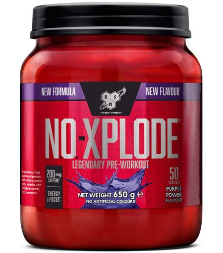 NO-XPLODE (650 g) avec édulcorants est la nouvelle formule extrême de pré-entraînement favorisant la puissance, l'énergie, la concentration, l'intensité d’entraînement et la congestion musculaire maximale. Cette nouvelle formule contient 6g de L-citrulline pour des congestions extrêmes, contient 3,2 g de beta alanine pour des entraînements toujours plus intenses, et 200 mg de rhodiola rosea par dose. Le complexe de stimulation du système nerveux a été renforcé avec l’ajout de 200 mg de caféine et de 50 mg de choline. La choline est un des composants de l’acétylcholine, principal neurotransmetteur de l’activité musculaire. Cette reformulation a des saveurs et textures améliorées mais surtout une augmentation maximale de la Caféine et Beta Alanine ainsi que l’ajout de L-Citrulline, Rhodiola Rosea et Zinc. Elle comprend également des Bioflavonoides de Pamplemoussse. Avec le nouveau NO-XPLODE tous les facteurs de l’augmentation du volume musculaire sont réunis : une matrice pour élever drastiquement les niveaux de NO (congestion et anabolisme) et une matrice pour te donner de l'énergie à l’entraînement et te permettre d’effectuer les reps supplémentaires qui déclencheront la croissance musculaire. Disponible en Purple Power (Raisin), Green Burst (Fraise Kiwi), Red Rush (Cerise Acidulée). ...