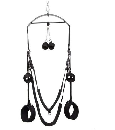 Je suis la balançoire de plafond Deluxe Fantasy de DOMINIX. Améliorez vos moments de plaisir et défiez la gravité en vous envoyant en l'air à 360 degrés. Je suis le top des acrobaties et de l'agilité sexuelle ! Je suis la pièce maîtresse de votre équipement BDSM. Mes sangles accomplissent le travail pour vous ou votre partenaire. Les positions les plus difficiles deviennent atteignables sans effort. Vos rêves deviennent réalité. Je vous permets d'accéder à des positions difficiles voire impossibles à réaliser sans moi ! De quoi expérimenter de nombreuses positions dont vous ne pourrez plus vous passer. Je vous permets d'accéder au vagin, à l'anus ou à la bouche, n'importe quelle zone érogène sera accessible ! Atteignez plus facilement le point G de votre partenaire et adoptez un angle qui augmentera la profondeur de pénétration. Vous pourrez également réaliser des cunnilingus encore plus efficaces puisque les jambes de votre partenaire resteront écartées plus longtemps et sans aucun effort : orgasmes et gémissements de plaisir garantis ! Totalement ajustables, les sangles assurent un confort complet tout en vous gardant dans la meilleure position possible. Tandis que les boucles détachables et les mousquetons me donnent une polyvalence extrême. Placez votre dos, fessier, cou ou jambes . Je complète la position désirée, vous n'avez qu'à vous laissez porter. Ma particularité est de disposer d'une barre de torsion en acier située sur l'accroche de plafond. Mes sangles peuvent être réglées individuellement en hauteur/longueur. Quelle que soit votre taille, je saurai m'adapter. Un confort maximal est assuré pendant votre voyage au septième ciel ! Relaxez-vous et profitez de vos rapports en toute tranquillité. Mes sangles sont conçues en nylon et les attaches de plafond sont en métal avec une charge maximale de 150 kg. Manuel d'installation inclus ...