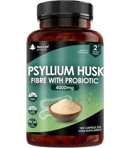 New Leaf products Ltd Psyllium Blond et probiotique 120 gelules 4000mg avec Lactobacillus acidophilus et Psyllium (ou Ispaghul)