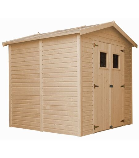 TIMBELA Abri de Jardin en Bois Naturel plus les planchers imprégné - Stockage extérieur avec fenêtres H228x222x233 cm/4,2 m² hangar en bois naturel - Atelier