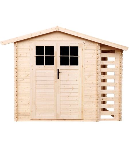 TIMBELA Abri de jardin en bois et range bûches extérieur - porte verrouillable de haute qualité - Stockage extérieur I206xL272xH218 cm/ 3,53 + 0,97 m2 Petit