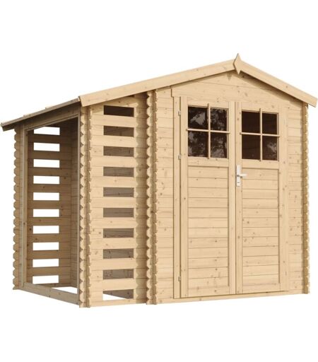 Abri de jardin en bois et range bûches extérieur avec sol traité, Porte verrouillable de haute qualité - I206xL272xH218 cm/ 3,53 + 0,97 m2 Timbela