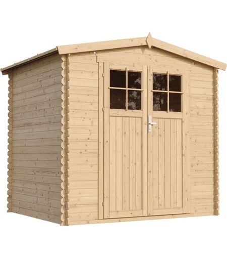 Description générale Le chalet en bois Timbela est la cabane de jardin extérieur de vos rêves. Fabriqué à partir de matériaux de haute qualité, il offre une protection contre les intempéries, tout en permettant une luminosité naturelle grâce à ses fenêtres. Sa double porte d'entrée facilite l'accès pour les objets encombrants. Spécifications techniques Matériau : Pin nordique / Épicéa Épaisseur du panneau : 19 mm Dimensions extérieures sans toit : L220 x l220 cm Dimensions extérieures avec toit : L236 x l226 cm Dimensions intérieures : L208 x l208 cm Surface utilisable : 4,33 m² Hauteur : 218 cm / 183 cm Toit incliné en contreplaqué résistant à l'eau OSB-3 (12 mm) avec revêtement bitumineux gris Fenêtres en verre organique intégrées : 39 x 45 cm Portes : 116 x 175 cm avec serrure Kit de montage inclus (vis, charnières) Manuel d'instructions de montage Plancher non inclus Poids : 229 kg Garantie : 2 ans Compatibilité et accessoires Peinture requise : 5 L de blanc + 5 L de couleur ...