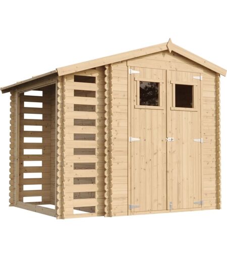 Abri de jardin en bois et range bûches extérieur - Stockage extérieur I206xL272xH218 cm/ 3,53 + 0,97 m2 Petit abri à outils, Local à vélos Timbela
