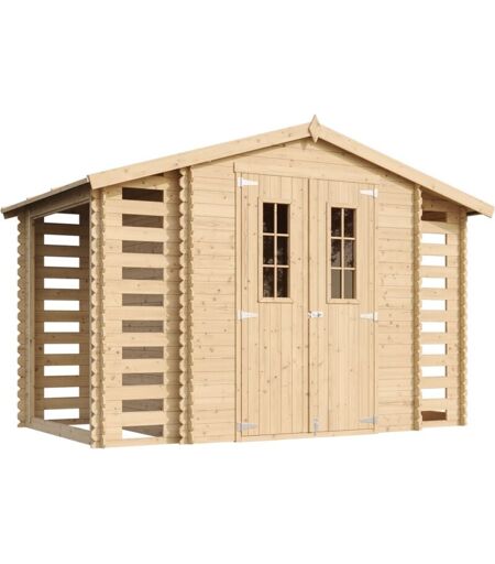 TIMBELA Abri de jardin en bois et range bûches extérieur - Stockage extérieur I206xL328xH218 cm/ 3,53 + 0,97+0,97 m2 Petit abri à outils, Local à vélos