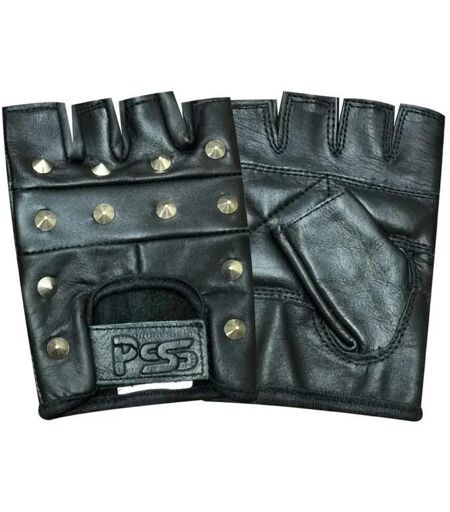 Pss Gants Cuir Noir Sans Demi Doigts Mitaines Cloutés Rivets Clous Décoratifs Conduite Cyclisme Vélo Musculation Fitness