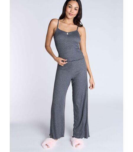 Snuggle up in our pretty heart pyjama set, made from soft ribbed material for ultimate comfort! Cami pyjama top. Matching wide-leg pyjama trousers. Soft ribbed material. Lettuce edge detailing. Ruching with heart buttons. Adjustable straps. Elasticated waist for comfort. Match with our fluffy socks or slippers. 65% Polyester, 30% Viscose, 5% Elastane. ...