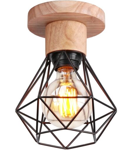 Axhup - Rétro Plafonnier Vintage Industrielle Cage Forme Diamant Lustre Suspension pour Salon Entrée Cuisine Noir - 1 Pack