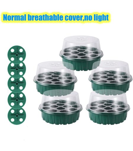 Boîte De Culture De Jardinage Avec Lumière Lauren, Démarreur De Semis, Pot De Germination Respirant Pour Légumes Et Fleurs Succulentes.5pcs Geen Round