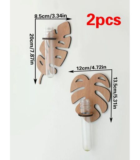 Jardinières Murales En Forme De Feuille, Pots De Plantes Muraux En Bois Suspendus Avec Vase À Tubes À Essai, Station De Propagation Intérieure, Décoration De Jardin De Maison, 1/2 Pièces.Flower Pot T