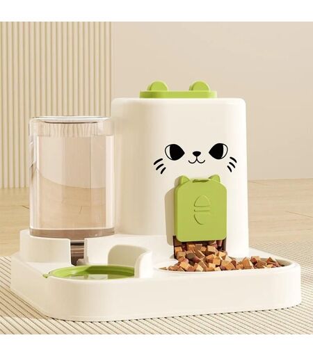 Mangeoire Et Distributeur D'eau Automatique 2 En 1 Pour Animaux De Compagnie,Plastique Abs Étanche,Bol De Stockage Des Aliments De Grande Capacité Pour Chiens Et Chats.Green Cat Face.