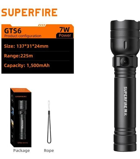 Specifications; Chimique Hign-concerné:Aucun; Numéro de Modèle:S33-A; Fonction:Résistant aux chocs,autodéfense,Lumière intense; Chargeur:Rechargeable; Longueur Focale:Non réglable; Est batteries incluses:YES; Source de lumière:Ampoules LED; Puissance:2.5W; Certification:CCC,ce; Couleur:Black,Marron; Switch Mode:Haut/bas; Etanche:Oui; Zoom:Pas de; Type D'article:LAMPES DE POCHE; Modèle des perles LED:SH-X02; Supporte variateur de lumière:2-4 fichiers; Type de lampe de poche:Outdoor, camping, patrol, maintenance; Matériel du corps:ABS; Distance d¿éclairage:50 - 100 M; Lumen:800; flashlight:Torch; Lantern:outdoor lights; led flashlight:Flashlight 18650; Lantern 18650:torche; camping:Camping lantern; Tactical flashlight:edc; High power led flashlights:Powerful flashlight; Rechargeable flashlight:flashlight with usb charging; rechargeable light:torch light rechargeable powerful; 1.Product Information; 2. Attention to the selection:; 1).When you receive the parcel, please turn on the flashlight and take out the white insulating sheet and tear off the transparent insulating protective film outside the battery, then put it into the flashlight and use a 5V/1A charger to charge, otherwise it will not charge normally!; 2). Any question about cannot turn on the flashlight, please contact us, we will do our best to help you deal it.; 3. Directions for use:; Press the switch to adjust gears (high light-low light-strobe flash-OFF). Press and hold any gear for about 3 seconds to open the SOS; Strong Light Flashlight; Original design, simple appearance; USB Charging Port; Small USB charging interface, charging more convenient; Built-in Large Capacity Battery; 800mAh large capacity battery, say goodbye to frequent charging; Long Shot 219M; Uniform light, direct light up to 219 meters, clear and bright vision; 4 Modes-Free Switching; Humanized design, illuminate your life in all aspects; Dron And Wear Resistance; Nitrolon glass fiber composite material enhances product rigidity and high temperature stability, impact resistance, corrosion resistance; IP43 Waterproof; High sealing structure design, windproof and rainproof, fearless in the face of wind and rain; Lightweight Design; Only 85 grams, mini size Can easily fit in your pocket; Outdoor Companion; Hiking, jogging, hands-free work, or sending a distress signal in an emergency. It covers most use scenarios.; ¿Hope it will help you; 1) About Shipment; * Pack and ship Our warehouse typically dispatches your package within 24 hours (promotional/holiday delays).; 2) About Shipping Day; * Deliver the package The time limit for normal transportation is 7-20 days, Some remote countries may take 20-40 days (please consult customer service).; 3) Refund & Replacement & Warranty; * Please contact us within 3 days with clear photos or video if you receive goods with problem.; * Returns can be requested within the first 15 days of receipt for a refund. Contact us for more return information.; * Warranty 1-year manufacturer's... ...
