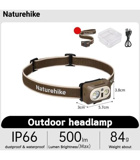 Natureifa-Lampe Frontale De Sauna À Induction,Batterie Intégrée,Lampe De Poche Aste Usb,Capteur De Pêche,Camping En Plein Air.Brown.