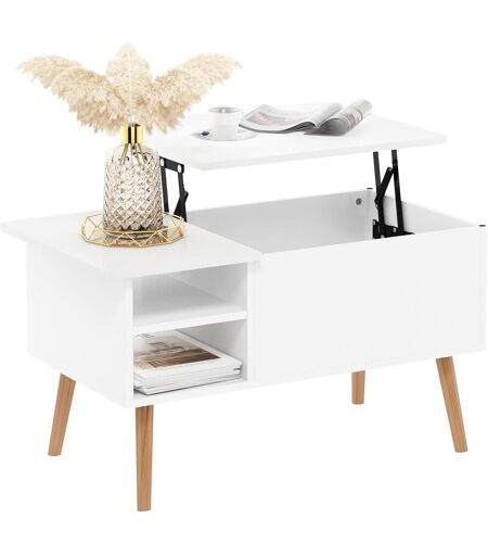 Jensen Table Basse Avec Plateau Relevable Avec Pieds En Bois,Compartiment Caché Et Étagère Latérale Ouverte Pour Le Salon,Blanc Massif