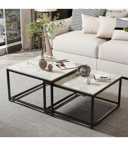 MATÉRIAU UNIQUE - Plaque supérieure fabriqué en pierre frittée qui rend une sensation profonde et luxueuse pour reproduire la texture réaliste de marbre naturelle, Pierre naturel et des minéraux compressé sous 16000 tonnes, en suite fritté sous 1500¿, nous aurons la pierre frittée qui résistent à l'humidité et aux rayures, ainsi qu'aux températures élevées, et la lumière réfléchie sans hyperluminosité, les tables basses carrées peuvent rester propres même après une utilisation à long termeTABLE DE CAFÉ CARRÉE - Deux tailles différentes (grande 65 x 65 x 40cm ; petite 60 x 60 x 34cm) de table de café carrée avec design italien s'adaptent parfaitement à salon, chambre et balcon. Le large plateau de la table peut contenir plus d'objets, vous pouvez apprécier le café et la lecture avec votre famille et vos amis autour de la table. Les tables gigognes conviennent également aux hôtels, aux cafés et aux attractions touristiques pour divertir les clientsUTILISATION LIBRE - Les grande et petite tables blanches peuvent être disposées côte à côte au centre du salon ou séparées de différentes manières, Elle est parfaite non seulement comme table de salon mais aussi comme table basse avec table d'appoint au style identique qui se fait échoCOMBINAISON DE DIFFÉRENTS MATÉRIAUX - La combinaison de différents matériaux tels qu'une plaque supérieure en pierre à motif de marbre naturel et des pieds en cubes dacier noir donne une impression élégante et intelligente, Il s'intègre facilement dans divers intérieurs tels que le style scandinave, le goût moderne et industrielMONTAGE ET GARANTIE - Avec les instructions et les accessoires fournis, la table peut être facilement assemblée. Comme il a également une surface lisse et imperméable, le nettoyage est rapide et facile, Si vous avez reçu un produit cassé, contactez-nous directement avec une photo, nous vous evoyerons tout de suite un produit tout nouveau, votre droit est tout garantie.La livraison depuis la France est prévue dans 5 jours ouvrés, n'hésitez pas à passer votre commande ...