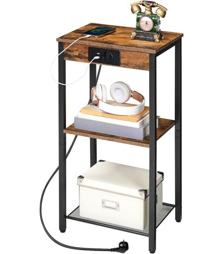 Table D¿Appoint Haute Avec Station De Charge,Table De Chevet Petite Pour Salon,Chambre,Couloir,Marron Rustique Et Noir Ebf09cdh01