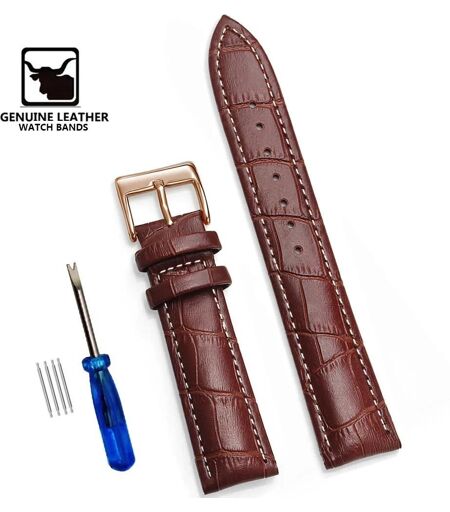 Kafol-Bracelets De Montre En Cuir Véritable De Qualité Supérieure,12/14/16/18/19/20/21/22/24mm,Bracelet De Poignet De Haute Qualité + Outil,12mm,Dark Brown White 2