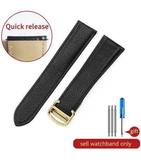 Kafol-Bracelet De Montre En Cuir Litchi Pour Cartier,Précieux Solo Ronde Lychee Mars,Bracelet En Cuir,Accessoires De Montre,20mm,23mm,25mm,16mm,Black-Gold-Z4