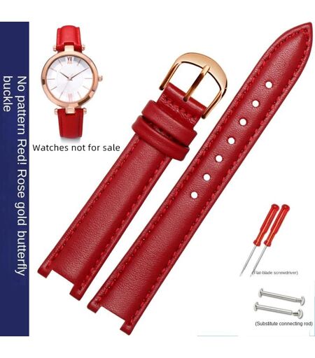 Kafol-Bracelet De Montre En Cuir De Vache Pour Tissot Folli Follie Rossini Ck Mk Mk5774 Mk2277 2425,Bracelet De Montre Cranté Pour Hommes Et Femmes,18mm,12x5mm(Notch),2-Red-Rose Gold