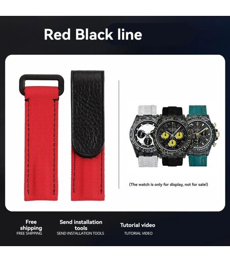 Kafol-Bracelet De Montre Universel En Nylon,20mm,Pour Tudor/Omega/Rolex/Iwc/Tissot Daytona Submariner,Fond En Cuir De Vache,Accessoires,20mm,Red Black